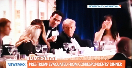 这张4月25日拍摄的视频截图显示的是美国华盛顿白宫记者协会晚宴现场。新华社记者李睿摄