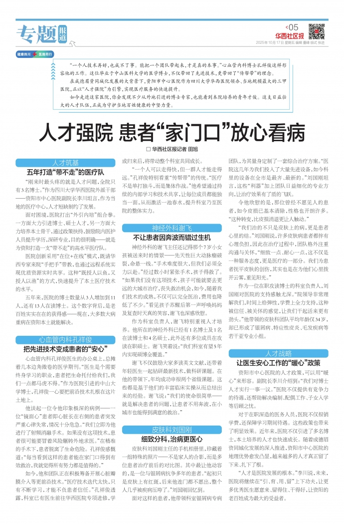 如今走进这家医院,你会发现不少从外地引进的博士专家,也能看到本院培养的青年才俊。这支日益壮大的人才队伍,正成为守护当地百姓健康的中坚力量。