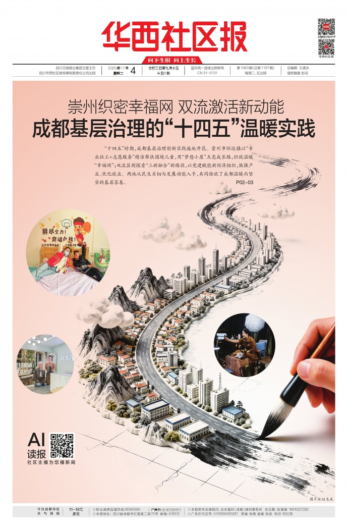 “十四五”时期,成都基层治理创新实践遍地开花。崇州市怀远镇以“专业社工+志愿服务”精准帮扶困境儿童,用“梦想小屋”点亮成长路,织就温暖“幸福网”;双流区则探索“三新融合”新路径,以党建赋能新经济组织,做强产 业、优化就业。两地从民生关切与发展动能入手,共同绘就了成都温暖而坚实的基层答卷。 P02-03