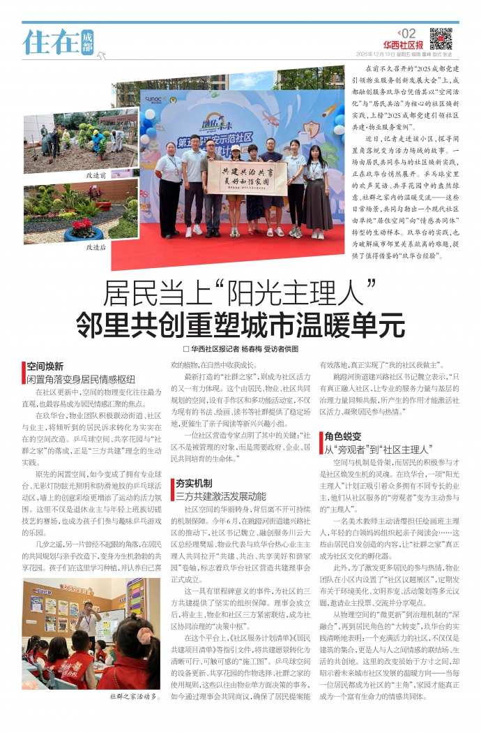 一位社区营造专家点明了其中的关键:“社区不是被管理的对象,而是需要政府、企业、居民共同培育的生命体。”