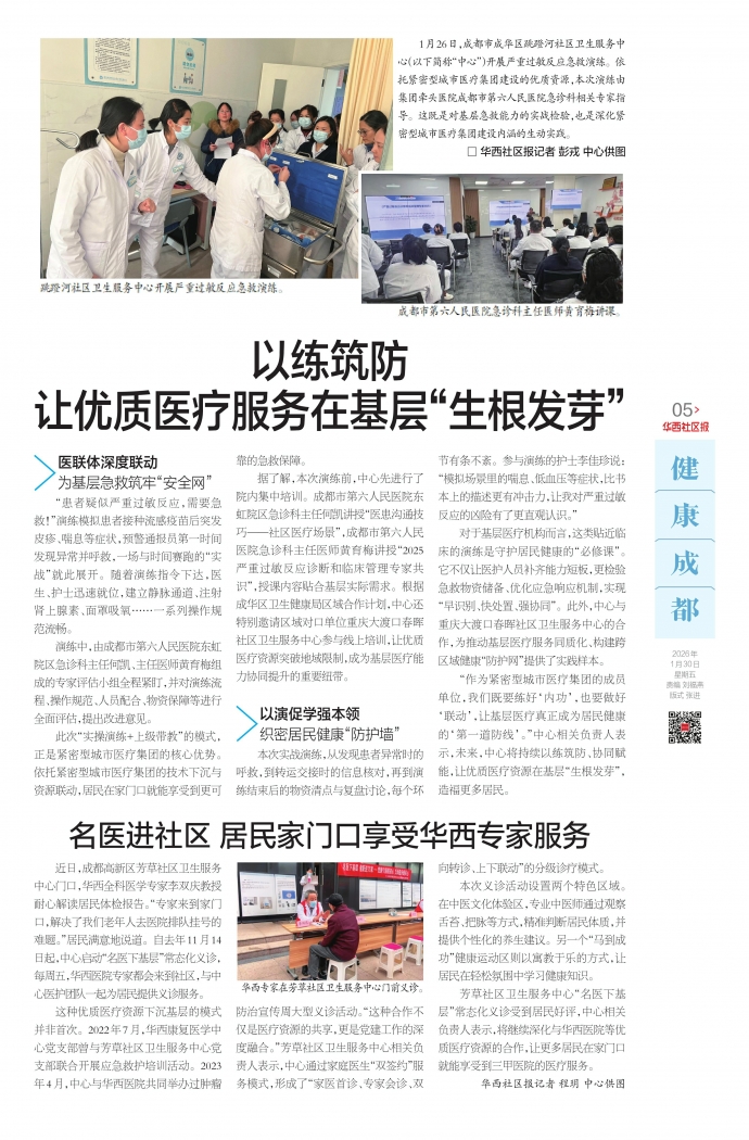 1月26日,成都市成华区跳蹬河社区卫生服务中心(以下简称“中心”)开展严重过敏反应急救演练。依托紧密型城市医疗集团建设的优质资源,本次演练由集团牵头医院成都市第六人民医院急诊科相关专家指导。这既是对基层急救能力的实战检验,也是深化紧密型城市医疗集团建设内涵的生动实践。