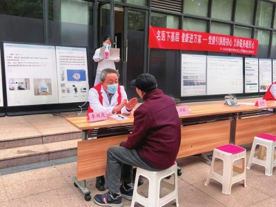 近日,成都高新区芳草社区卫生服务中心门口,华西全科医学专家李双庆教授耐心解读居民体检报告。“专家来到家门口,解决了我们老年人去医院排队挂号的难题。”居民满意地说道。自去年11月14日起,中心启动“名医下基层”常态化义诊,每周五,华西医院专家都会来到社区,与中心医护团队一起为居民提供义诊服务。