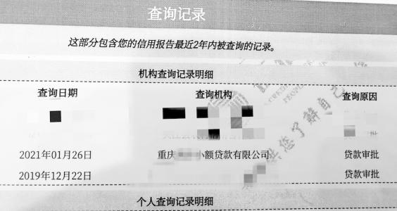 但在4月底查询个人征信报告时,陈楠发现了蹊跷。“我在银行工作,单位每年都要求提交个人征信报告。一查询我就发现了问题,在机构查询记录明细一栏中,出现了一条重庆某小额贷款有限公司的查询记录,查询日期是1月26日,但我从来没有同意这家公司查询我的征信。”她仔细回想,发现小贷公司查询时间与3个月前到营业厅办理套餐的时间刚好吻合。