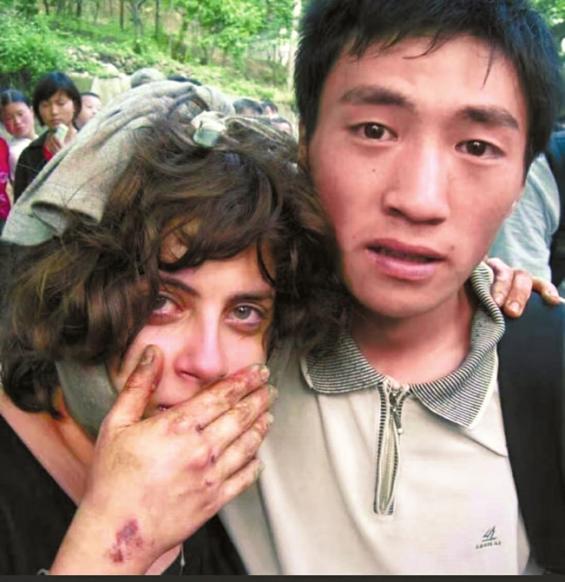 ◀2008年“5·12”汶川地震,都江堰小伙蒋伟救助身受重伤的以色列姑娘玛阿雅。
