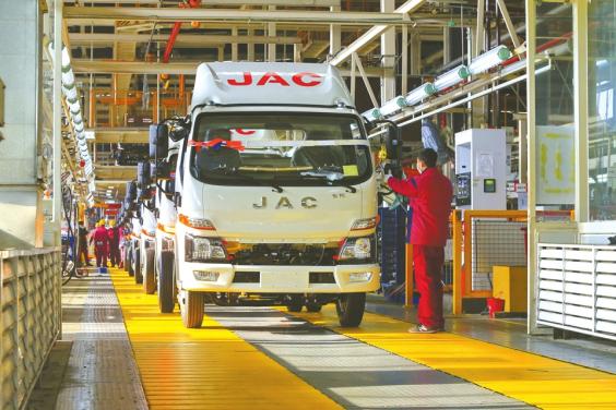 累计下线13.5万台汽车的四川江淮总装车间。