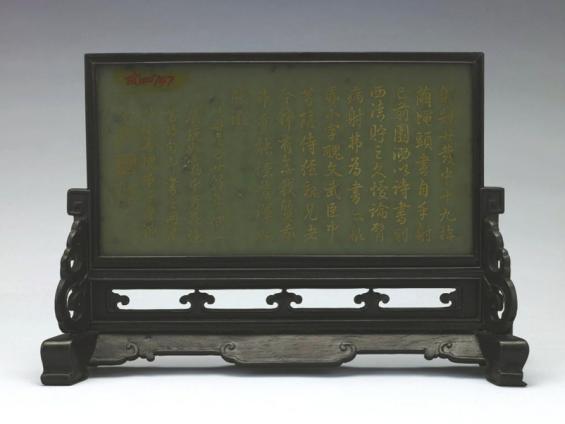 乾隆款行书兰亭诗句碧玉双面小插屏。 故宫博物院藏