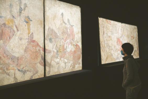 观众在参观展出的壁画。