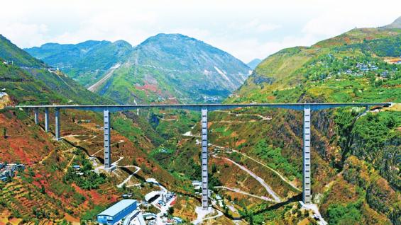 •在大凉山南麓、金沙江北岸,即将完工的三峡连心桥飞架金阳东西城区。这座桥的6号桥墩高196米,刷新了钢管混凝土格构空心墩世界纪录,堪称“世界第一高墩”。