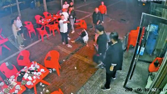 6月10日凌晨2点40分许,唐山市公安局路北分局机场路派出所辖区某烧烤店寻衅滋事、暴力殴打他人案件现场。 (监控视频截图)
