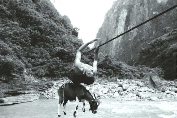 2005年,凉山州布拖县阿布洛哈村村民且沙次干通过溜索把羊运出去卖掉。林强供图