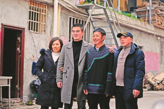 12月10日,甘宇(左二)和家人到倪太高(右二)家登门致谢。