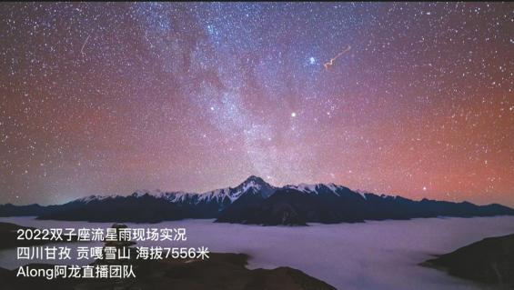 贡嘎雪山上空上演的双子座流星雨。