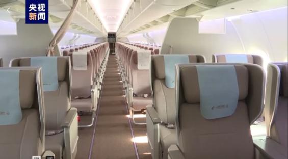 C919舱内布局。央视截图