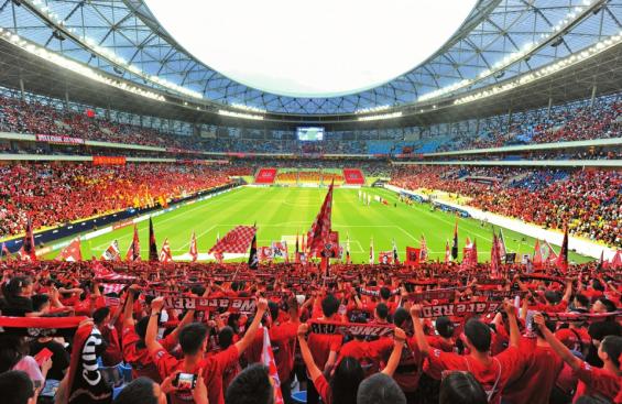 从一个细节就能看出,受专业球迷影响,“散装”球迷的服装,也在自发地逐步统一:本赛季第一场比赛时,红色还未占到一半。但10轮比赛下来,整个体育场已成一片红色海洋。