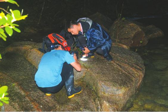研究团队在野外开展蛇类研究工作
