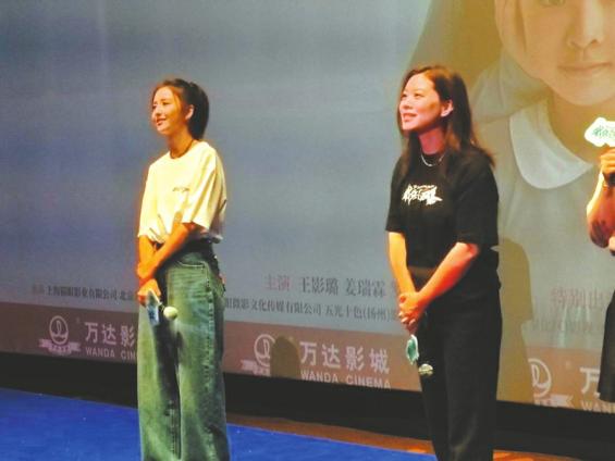 导演秦海燕(右)与主演佟丽娅在路演现场。