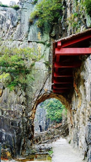 到了石门栈道,旅程并没有结束,因为真正的石门栈道距离景区还有70米,被深深地淹没在了水下。