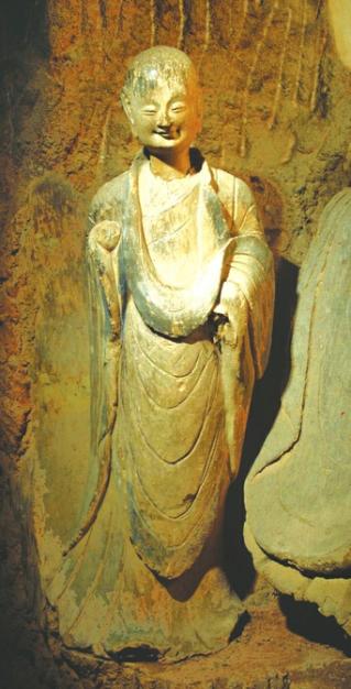 麦积山石窟第133窟小沙弥立像,被誉为“东方微笑”。