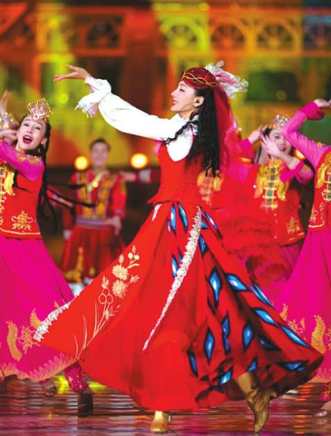 热巴穿的艾德莱斯舞裙是用非遗技艺制作。