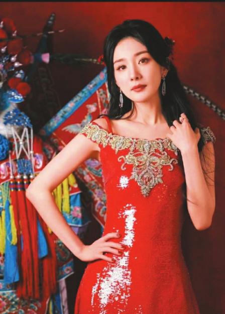 杨幂一直是新中式服装的潮流引领者,她在龙年春晚上亮相时,红色细亮片裙上有着金色中式刺绣,既端庄优雅,又因为亮片材质增加了时髦度。