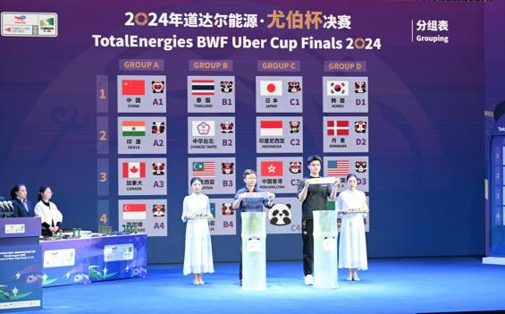 根据抽签结果,汤姆斯杯共16支参赛队伍,中国队、韩国队、加拿大队、澳大利亚队同分在A组,日本队、中国台北队、德国队、捷克队同分在B组,印度尼西亚队、印度队、泰国队、英格兰队同分在C组,丹麦队、马来西亚队、中国香港队、阿尔及利亚队同分在D组。尤伯杯共有16支参赛队伍,中国队与印度队、加拿大队、新加坡队同分在A组,泰国队、中国台北队、马来西亚队、澳大利亚队同分在B组,日本队、印度尼西亚队、中国香港队、乌干达队同分在C组,韩国队、丹麦队、美国队、墨西哥队同分在D组。