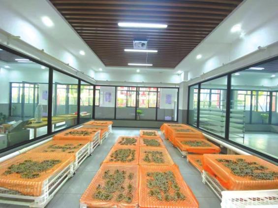 养蚕跟养娃差不多,在不同阶段有不同的喂养方式。先要催青孵化,催青室要恒温恒湿,温度35℃,空气湿度70%-80%,黄色的蚕卵在这里发育变成青色,蚕宝宝胚胎发育好了,破壳而出,叫做催青。