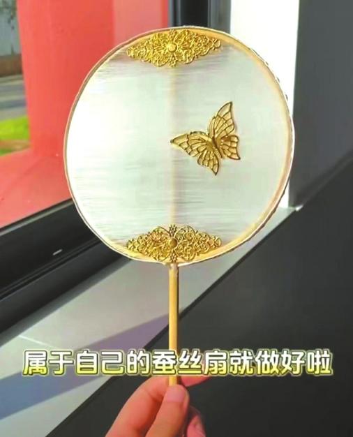 “蚕茧有很多用途。”蚕结的茧可以用来做什么?南充高中高坪校区教科室副主任吴静介绍,同学们可以用蚕茧学习制作蚕丝扇。一个蚕茧能“变”成一根1500米长的蚕丝,大家可以在网上购买制作扇子的材料,然后自己在家制作蚕丝扇。”先把蚕茧放到热水中蒸煮3分钟左右,慢慢抽出丝,再均匀地缠绕到扇框上。5到6个蚕茧就能制作一把美美的蚕丝扇。另外,蚕茧还可以作画。