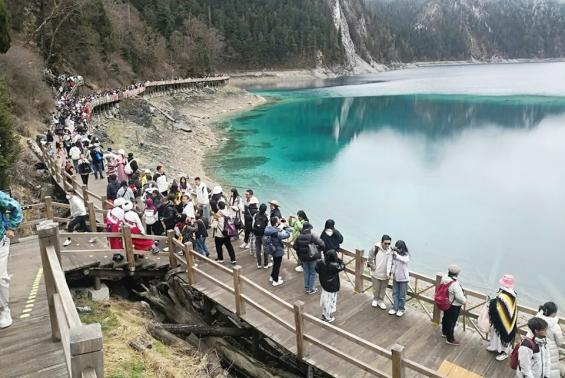 “五一”假期,九寨沟景区人流如织。图据九寨沟景区