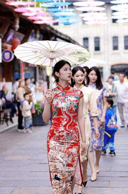 成都大邑安仁古镇举行旗袍秀活动。图据成都文旅集团