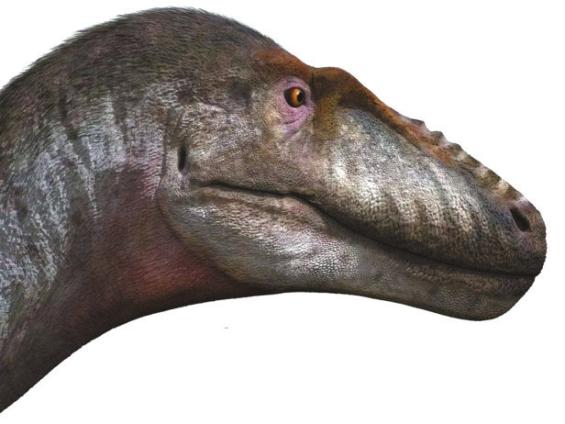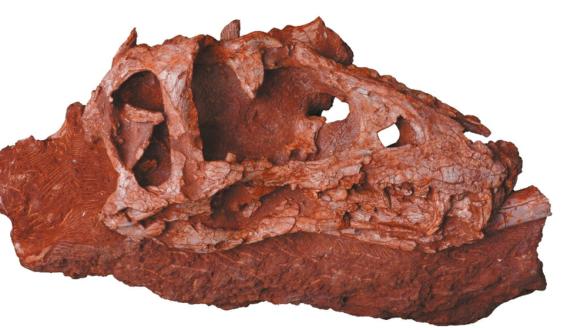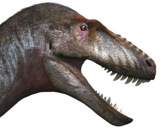 许多人印象中的暴龙都有一个硕大的脑袋。郑文杰说,依据吻部的特征划分,暴龙的头也有两种类型。大部分暴龙科恐龙的头骨为深吻型,头骨前后相对较短,上下颌间距离高一些,看起来有点“方”,像霸王龙和特暴龙的头骨都属于这种类型。徐氏亚洲暴龙的头骨全长47.5厘米,也属于深吻型。另有一部分暴龙科恐龙的头骨是长吻型,吻部狭长。这样的恐龙又被归为分支龙类。