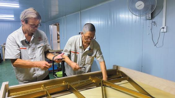 苏尔茨(左)与老高在制作钢琴。