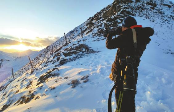 华西都市报、封面新闻记者杨涛在夹金山上采访拍摄。
