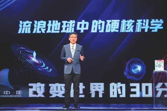 王元卓在讲解流浪地球中的硬核科学。