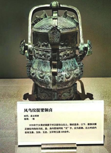 凤鸟纹提梁铜卣。