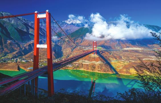 跨径第一的钢桁梁悬索桥叙永高速赤水河红军大桥,是四川省内跨径排名第一的钢桁梁悬索桥,全长2009米,主跨1200米,2019年建成,是山区高速峡谷大桥中的世界第一高塔(桥塔顶距离赤水河谷底达503米)、世界第二跨径的钢桁梁悬索桥,历时29个月建成,创造了同类桥梁建设史上的最快速度。