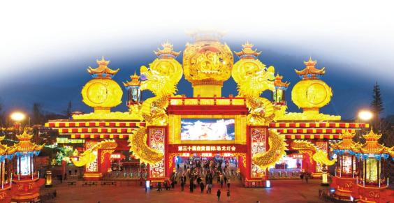 第30届自贡国际恐龙灯会爆火的灯组(华夏之门) 。(本版图片由受访者提供)
