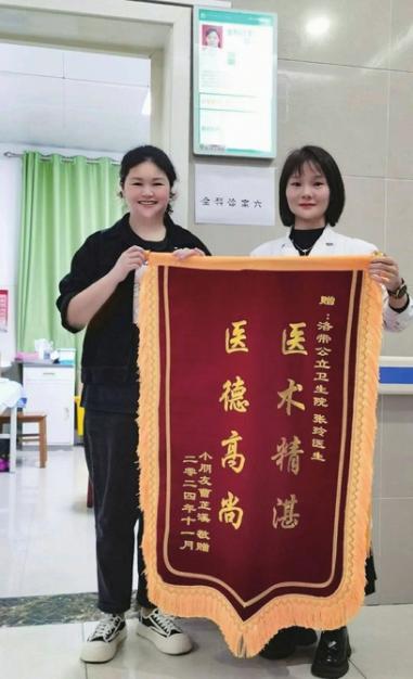 张女士向张玲医生赠送锦旗表谢意。