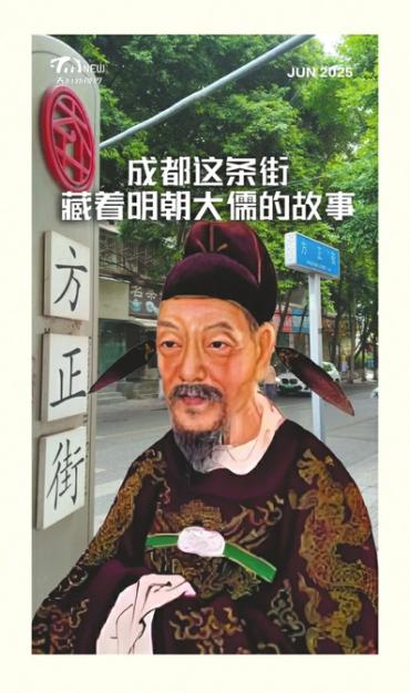 明 洪 武 二 十 八 年(1395年),方孝孺第二次入川。朱椿为其书斋题名“正学”,方孝孺因此被后人尊为“正学先生”。这也 是方正街街名的由来之一——方孝孺去世后,成都官民在蜀王府授意下,将其曾居住的街道更名为“方正街”,以资纪念。“方正”二字,既取自方孝孺之姓,又源于“正学先生”之号。