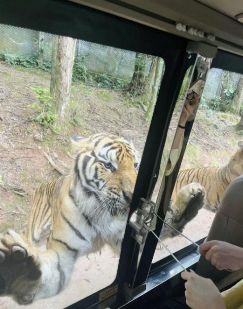 这与动物零距离接触的奇妙体验,以及“森林之王”扑面而来的压迫感,瞬间点燃了车内记者们的热情,惊呼声、快门声不绝于耳。