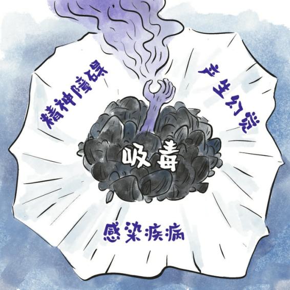 吸毒者往往还会出现精神障碍,比如产生幻觉和丧失人格等;静脉注射毒品常常会带来感染合并症,常见的有乙肝、艾滋病、梅毒等感染性疾病。