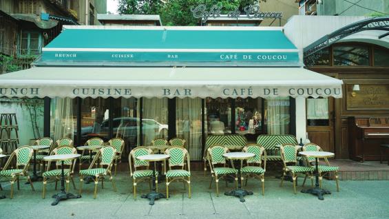 这条街上的人气担当,还有一家名为Café de Coucou(杜鹃咖啡厅)的法式风情餐厅。古朴的法式店门左侧,白色遮阳棚下排开一列雅座。有人在此会友小酌,有人伴着咖啡香沉浸书海,悠然自得的姿态,瞬间将人带入巴黎左岸街角小馆的浪漫情境。