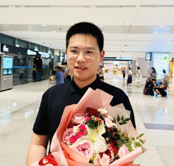 距离航班落地还有1小时,成都七中的老师们已准备好鲜花、横幅在双流国际机场等候着,赵垚晰的爸爸妈妈也从老家乐山沐川赶到成都,每个人脸上都洋溢着幸福的微笑。黑色半袖,米黄色长裤,银色边框眼镜,一个行李箱,一个背包。14日晚上8点半,华西都市报、封面新闻记者在机场见到了这个阳光的男孩。