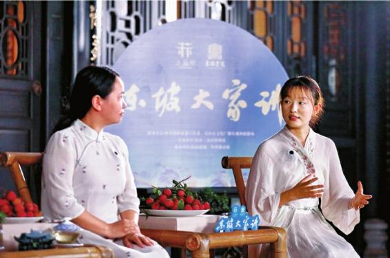 罗安琪(右)在讲座中讲述苏东坡在惠州的朋友圈。文博 摄