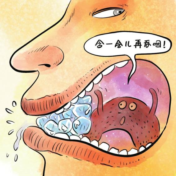 食用冰冷食物时,应放慢速度,不要大口吞咽。也可以将食物在口中含一会儿,避免上颚部位直接受到剧烈冷刺激,避免头痛发生。