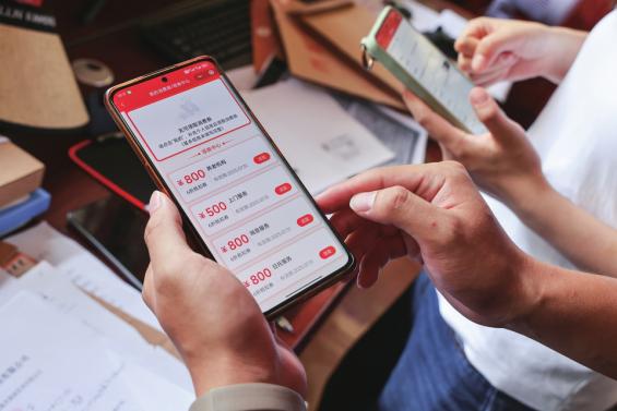 7月30日,成都市郫都区友爱社区养老服务站内,郫都区民政局工作人员李卓点开手机上的“民政通”小程序,帮助一位入住老人录入身份信息,点击“提交”后不久,一张养老服务电子消费券成功发放至老人账户。