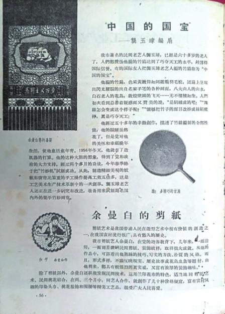 1953年12月7日《人民日报》上刊发的龚扇第二代传承人龚玉璋创作的龚扇作品。