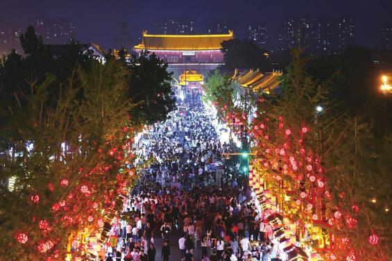 国家税务总局最新增值税发票数据显示,2025年国庆中秋假期消费市场增势较好。图为10月1日,游客在河北正定古城休闲游玩。 新华社发