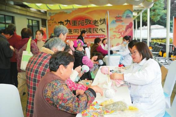 同一日,锦江区牛市口街道莲花社区也在辖区广场举办了“我们的节日·重阳——情暖重阳,关爱老人”便民服务活动。来自锦欣中医医院的医护人员组成专业团队,为老人们提供免费血压测量、血糖检测、中医问诊等服务。他们一边细致检查,一边耐心询问老人的生活习惯与病史,逐一给出贴心的健康指导,让每一位老人都感受到被重视、被关爱的温暖。