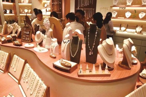 10月14日,顾客在新开业的义乌全球数贸中心的商铺内选购商品。