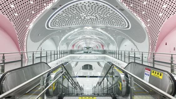 考虑到站点周边医疗资源密集,华西坝站设置了两部长达79米的自动人行道,为就医人群提供便利。